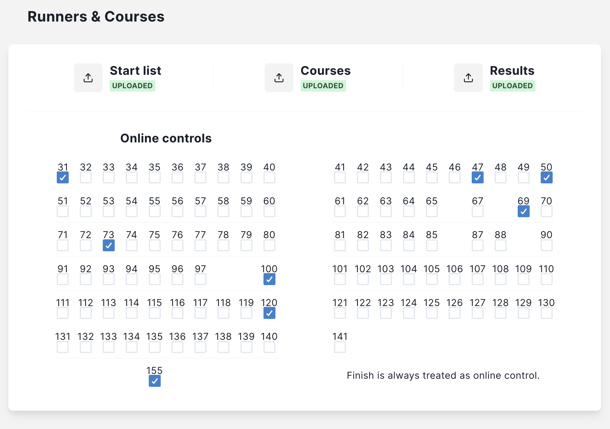 The list of controls will be displayed after uploading the courses. Check all the controls wich you want have as online controls.